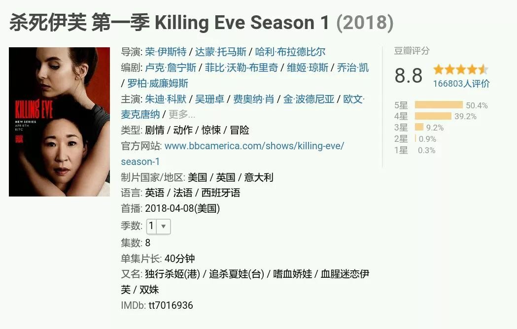 近日,BBC官方宣布《杀死伊芙》第四季将是最终季,一共有8集,主演吴珊卓和朱迪科默都会回归。