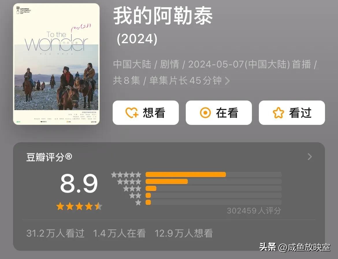 点评:1 剧本真实,场景唯美。为还原书中场景,剧组首次采用了4K超高清拍摄制作。2 剧情细节突出。例如巴太水中倒影的镜头,剧组特意买来鱼缸,从鱼缸下面拍摄的。3 演员表现亮眼,剧中演员可谓敬业。比如于适为贴近角色,开拍前于适特意学了半年多的哈萨克语,骑马镜头也不用替身,本人上阵。