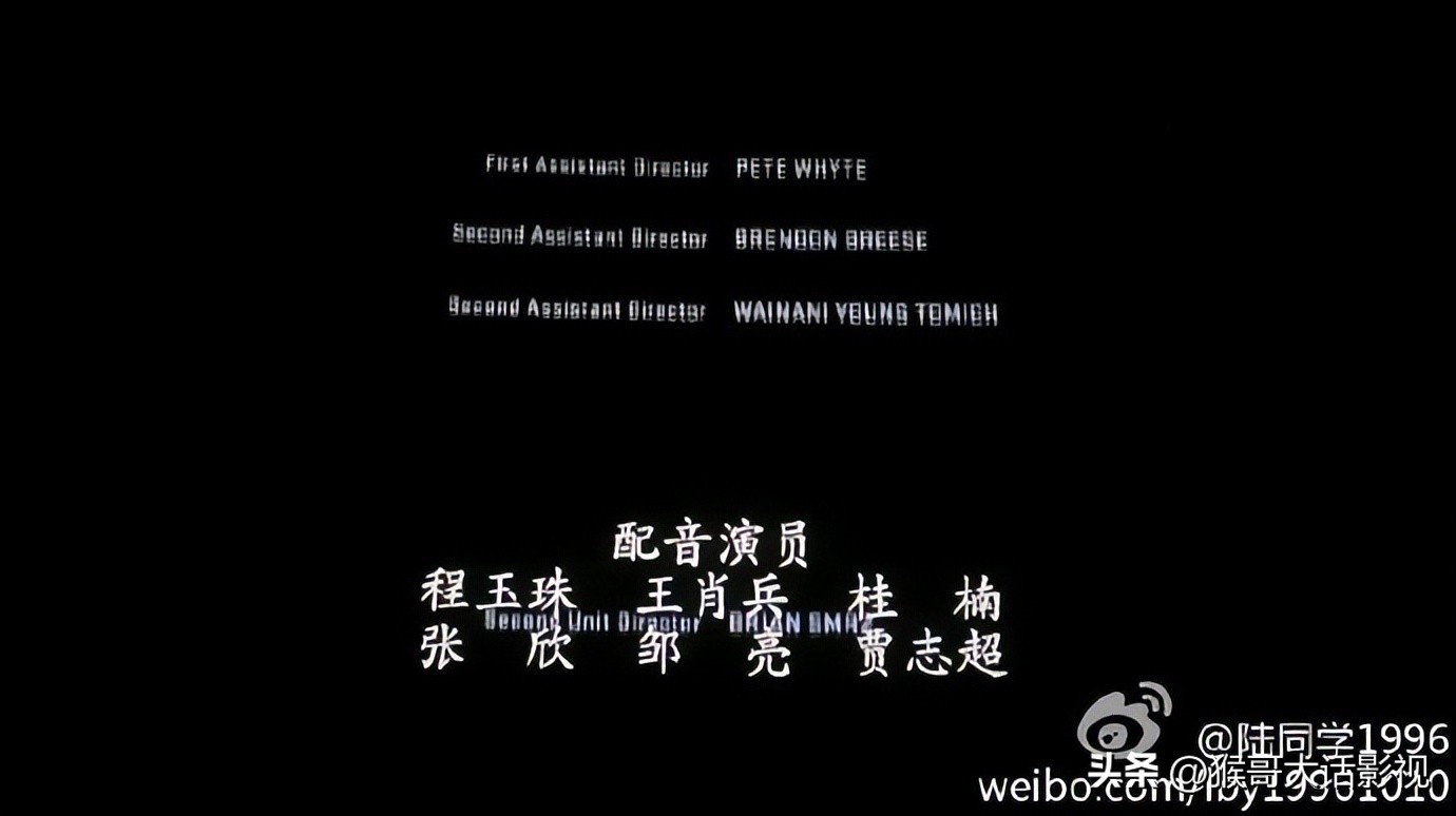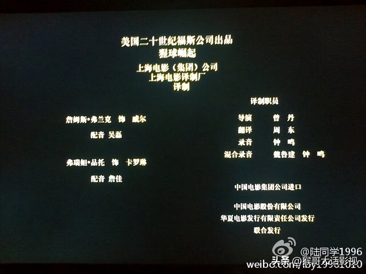中国内地影院是2002年1月公映的这部电影,中国内地票房是861万人民币。正如刚才的公映海报所示,国语配音版由上海电影译制厂译制,我们来看看配音表