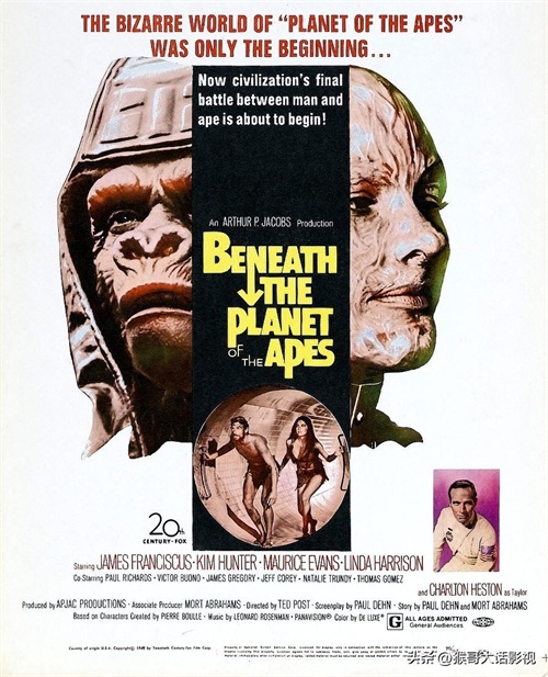 即《人猿星球》1968版,影片改编自皮埃尔·布尔同名小说,一共拍了五部。
