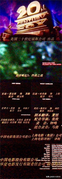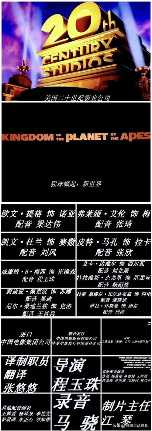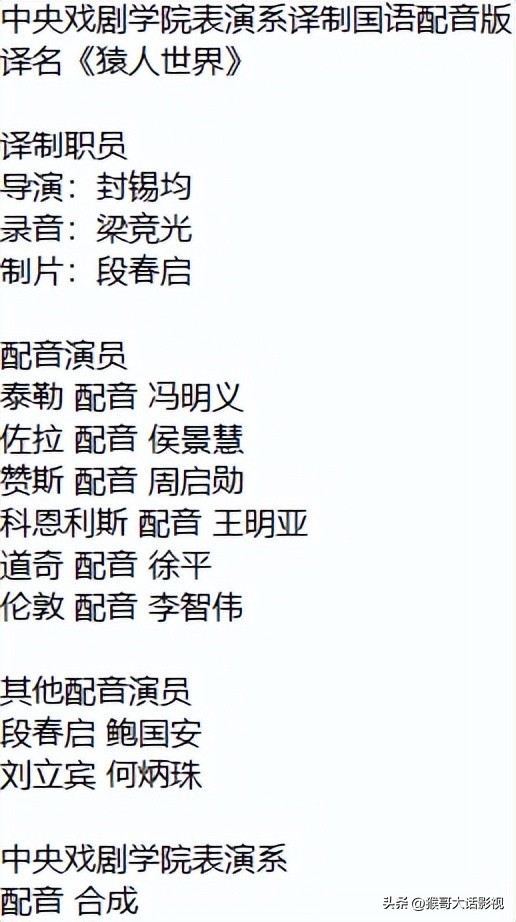 “六公主”也播过2001版《人猿星球》,译名《决战猩球》,我们来看看配音表