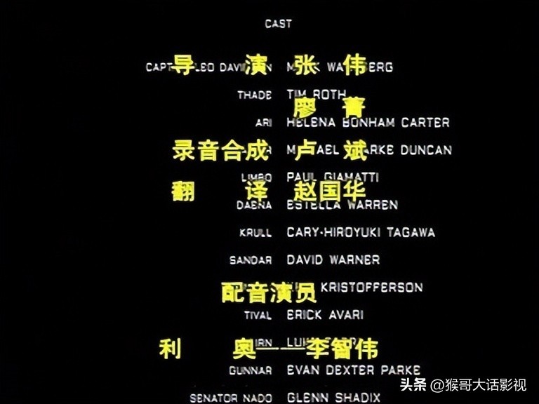 不过这个2001版《人猿星球》不止这一版国语,德加拉碟片译名《人猿星球》,我们来看看配音表
