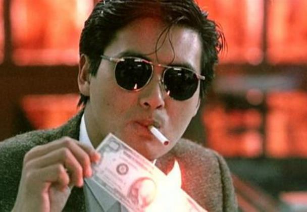 周润发有不少的抽烟的镜头,大部分都是用钱点烟,堪称最经典的镜头之一,这似乎已经成为发哥的招牌吸烟动作了。