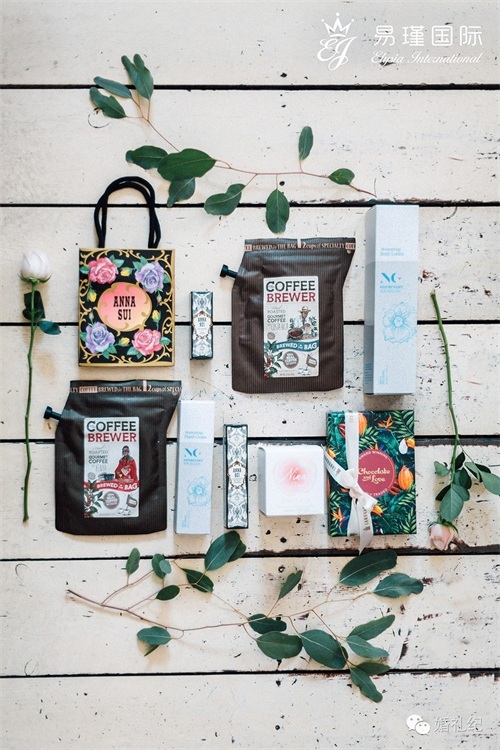 易瑾国际婚礼策划说除了实用,还很细心地考虑到了伴手礼包装的配色哦~