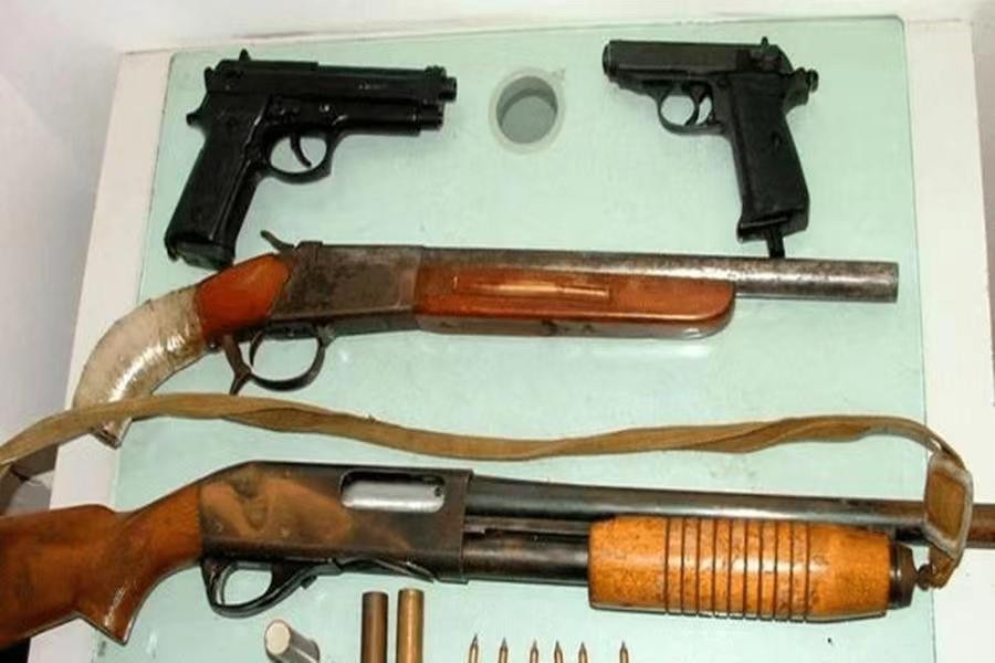 马上转过头来,“哟,你干嘛呀,拿破枪吓唬谁呢,”高利这话音刚落,张宝林在边上也站起来了,“咣啷”又是一把枪掏出来,就是那种五连发,长猎枪锯短了的,同时也顶在高利脑袋上。