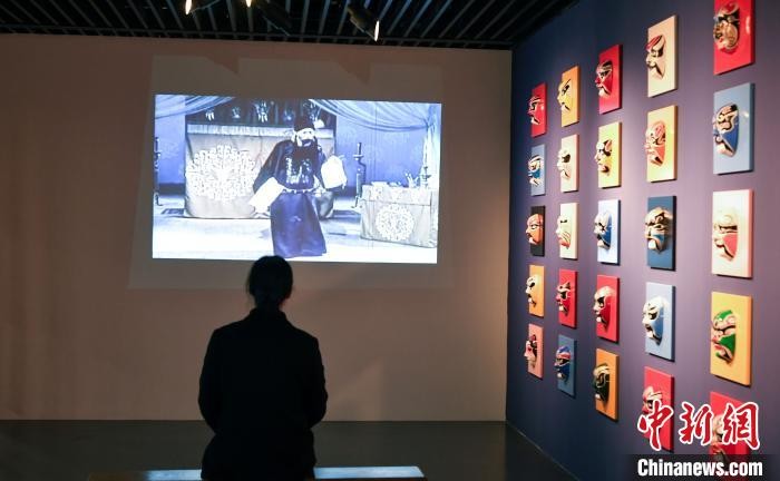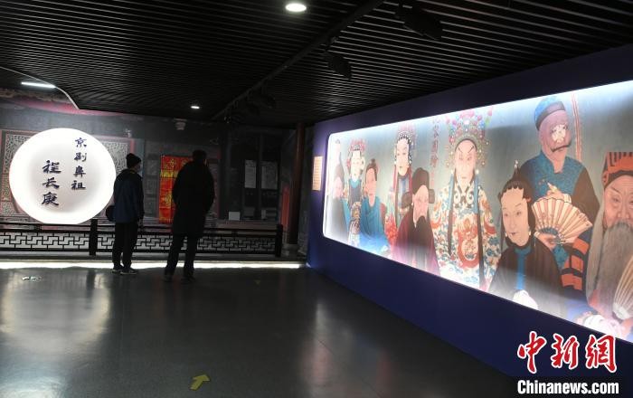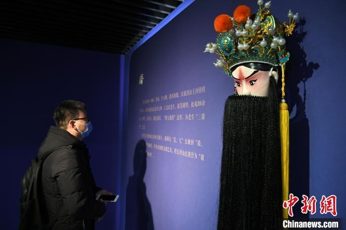 12月15日,一位参观者正在观看程长庚戏曲表演片段。 韩苏原 摄
