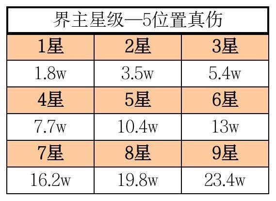 大后期之前20本3>6星真伤,慢慢更新成5>8星真伤8级约4.7w,+基础14w,可达18w真伤。