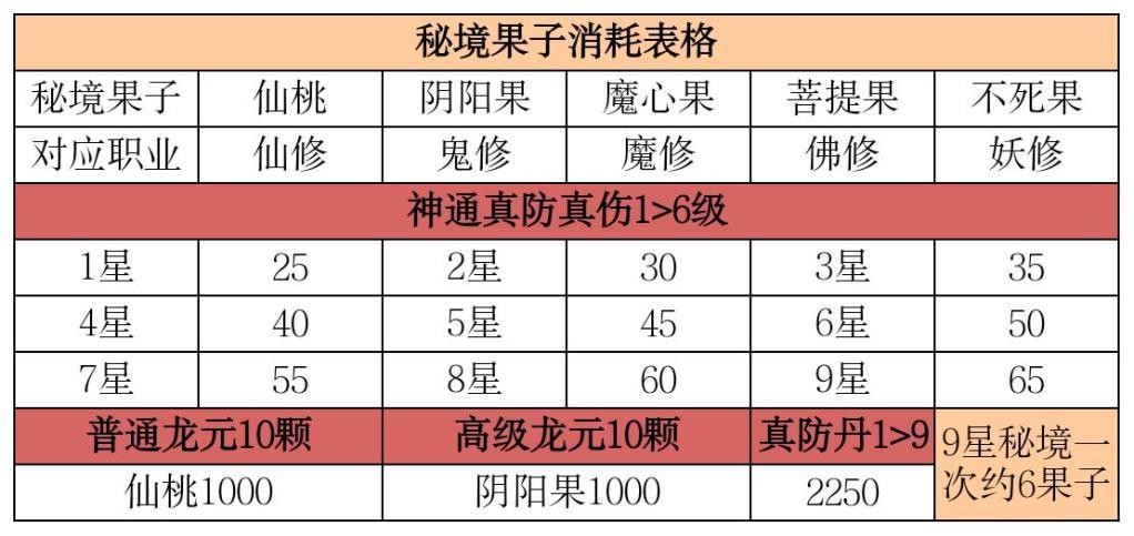 真防丹与神魔遗迹都是近期更新的,表格中的真防获取都极耗费时间,属于后期才能达成的属性。