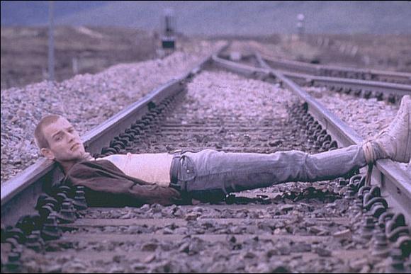 很多人都把《猜火车》叫做颓废电影,我却不这么看,年轻就是有张扬的资本,而许多人眼中“正常”的生活一日如一日,就像被抹平的机器,规律而无活力也没个性,马克他们一伙疯狂的生活状态,其实就是在抗拒自己成为这种生活的一分子,不论观者是否承认,大家内心深处还是对他们这种生活小小向往过的,这也就能解释为什么大多数人在看前半部分的时候热血沸腾,而到了后半部分则会感到怅然若失。导演巧妙将马克一伙连带观众小小嘲讽了一把,因为,不管最后马克选择的是怎样的生活方式,他的前途都是渺茫的(《毕业生》也有这种感觉),在这种社会背景下,这种生活方式下,我们中大多数人观看的其实是自己的悲剧。