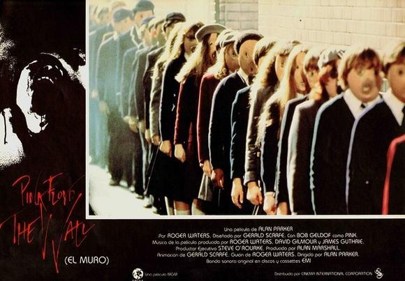 首先在Pink Floyd的演出《In The Flesh》中我们逐渐步入影片。Pink从刚一出生就面对着如履薄冰的人生《The Thin Ice》,这似乎就暗示了Pink一生的展转命运和悲哀的人性。Pink的童年是被蒙上阴影的,他在公园孤独的寻找父爱,影片转到了他孩提时代对在二战中阵亡父亲的回忆《Another Brick In TheWallpt.1》;他在学校不得不面对刻板严格的填鸭式的教育制度《The Happiest Days Of Our Lives》以及《Another Brick In The Wall pt. 2》;在家里,母亲对他过分的看护让他极度反感,使他丝毫感受不到任何家庭温暖《Mother》。童年不幸的遭遇让Pink的性格孤僻绝望,他不由得自问到:“我该相信政府吗?他们会把我送上火线吗?我是否该修建一堵墙?”(墙的第一次浅意识存在)太多的疑问过后,Pink看到的回答却是这个世界依旧充斥着漫天而降的炸弹和奔向掩体的平民。他不知道该何去何从《Empty Spaces》。于是他更加绝望了,他终日堕落,对任何事情毫无兴趣。在他的心里他渴望爱和被爱,他在对爱欲的憧憬和渴望中《Young Lust》高喊着“I need a dirty girl”;然而在现实的无奈和空虚中,他只得假装一切都好,他对自己伪装。但是日复一日,爱变得灰暗不再美丽,他的心开始变得苍老并得不到任何快乐《One Of My Turns》,他感到的只是剃刀般的冰冷和葬礼的鼓声,以及对女友离去后所发出的凄惨的哀鸣《Don’t Leave Me Now》。此时的Pink已经完全绝望了,他已经不再相信任何人,他觉得他就像一块墙上的砖头被强行禁锢在其中迷失了自我《Another Brick In The Wall pt. 3》(墙的第二次潜意识存在)。在他的结束曲《Goodbye Cruel World》中,他彻底将自己和周围的世界隔离开。Pink 已完全建立起来的自我封闭的墙,它表明他已深深地陷入精神失落的旋涡里。