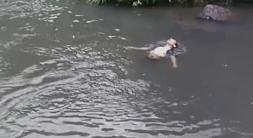由于阿明对毛老师深信不疑的盲目崇拜,想也没想就再次的跳进了水塘里。