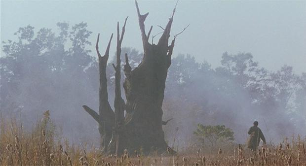 寺庙所处之地的景色如水墨画一般,人物的细微情感从中缓缓渗出。片中季节和天气的变化鲜明而又饱含情感,在带着一丝忧郁色调的同时又不失克制的冷静,这些点滴的变化都反映着角色内心微妙的情感变动。影片视觉力量的另一来源是宗教和民俗,那些极具东亚特色的雕塑、带有仪式意味地刻在地上的汉字以及和尚们身上的民族服饰都构成了金基德这部杰作的独特美感。