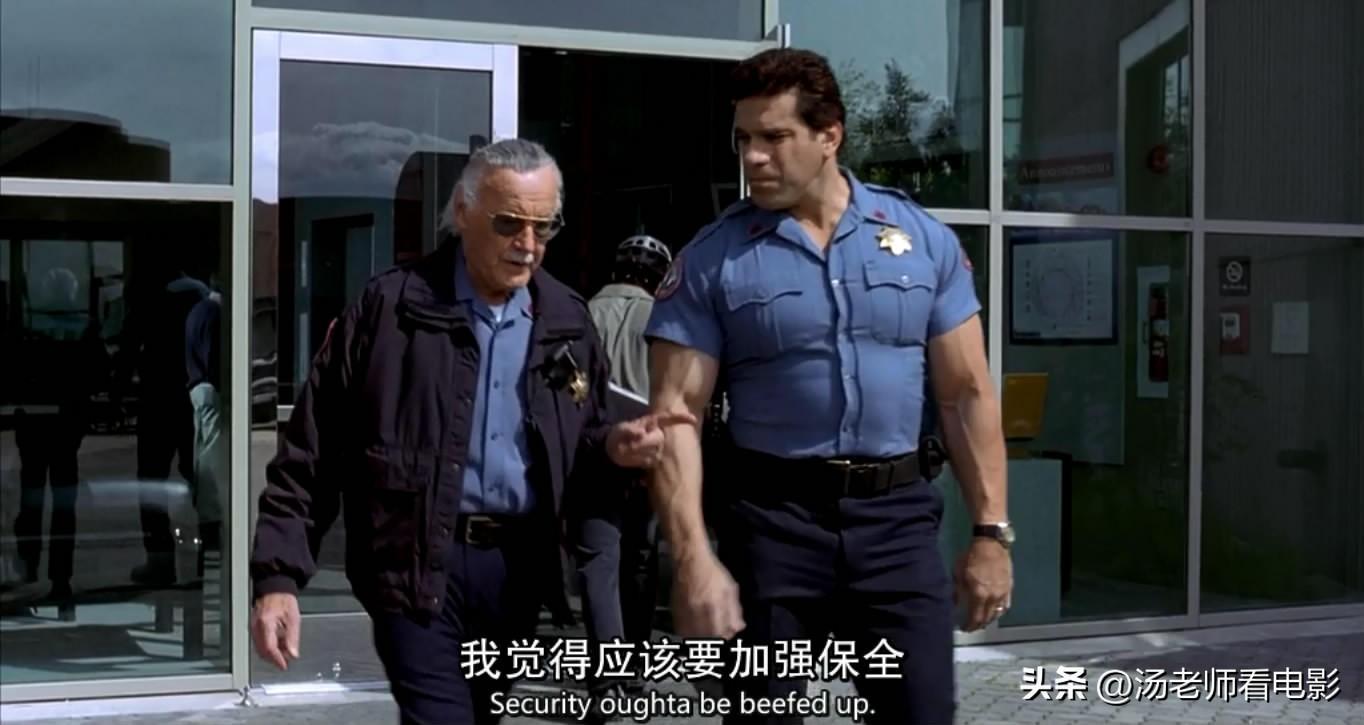 终于斯坦·李老爷子在李安执导了这部《绿巨人浩克》中获得了一些台词。而这次的客串让影迷们难忘,因为和斯坦·李一起客串出现的还有初代“绿巨人”卢·弗里基诺,两人作为保安一起出现在了班纳实验室的外面。