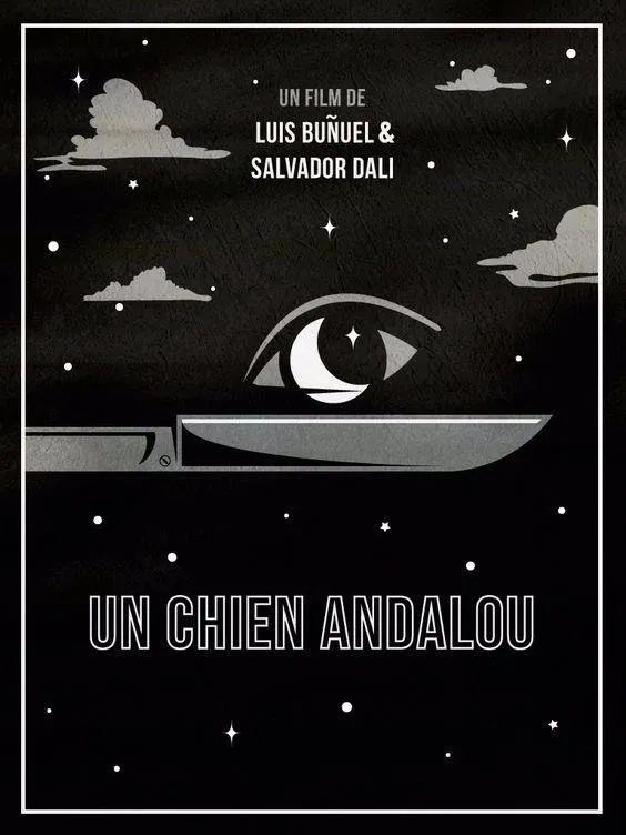 另一部超现实主义电影《一条安达鲁狗》由西班牙导演路易斯·布努埃尔(Luis Buñuel)与艺术家萨尔瓦多·达利创作。影片叙事在短短的17分钟里持续流动、变化,每个叙事片段如同梦的碎片,被男女主角之间令人不安的气氛串联起来。蚂蚁从手上的洞里钻出来等意象则充满弗洛伊德的精神分析的隐喻,与前卫的剪辑方式相结合,使观众熟悉的事物变得陌生而神秘。