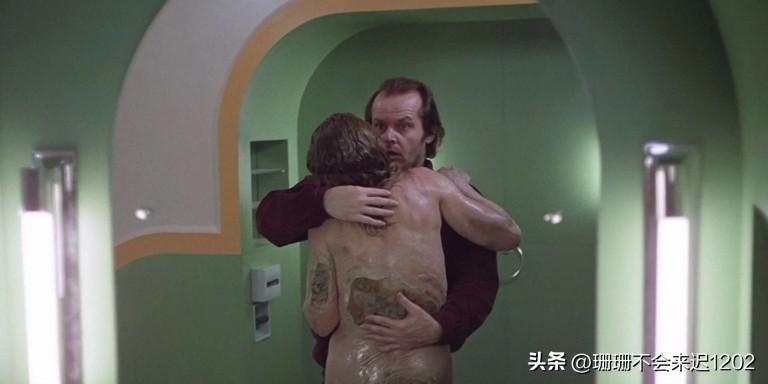 在一个可怕的场景中,杰克托伦斯(杰克尼科尔森饰)发现他所拥抱的幽灵女人已经从一个美丽的年轻女孩变成了一个衰老的老妇人。