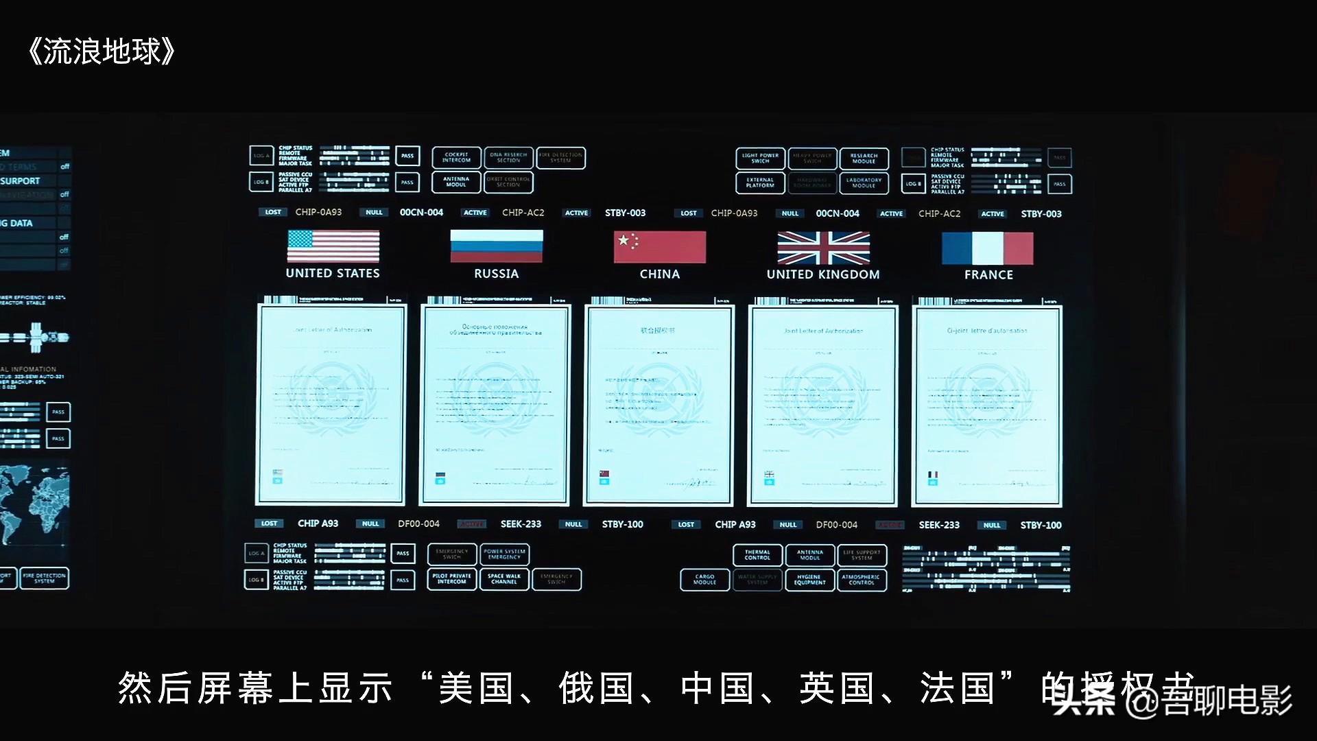 然后趁机进入总控室,刘培强试图手动操控空间站,莫斯则发出警告,它说莫斯从未叛逃,只是在履行已授权的指令,然后屏幕上显示“美国、俄国、中国、英国、法国”的授权书,
