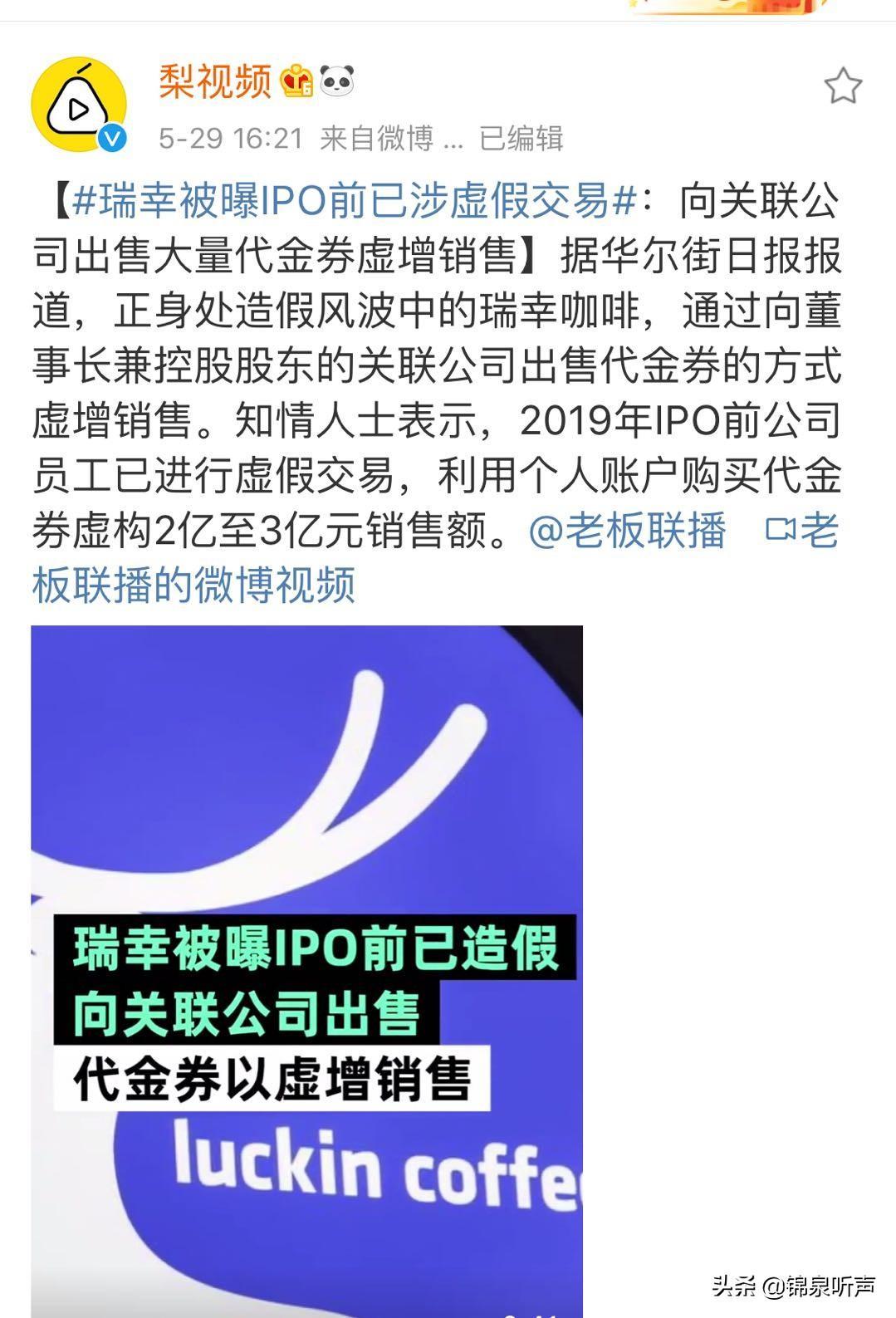 就在今天(5月29日),美国华尔街日报又曝料称:瑞幸咖啡在进行IPO前,就已经涉嫌虚假交易。知情人士透露,员工会注册个人账户购买大量代金券,以此方式至少捏造了2亿至3亿元的销售额。