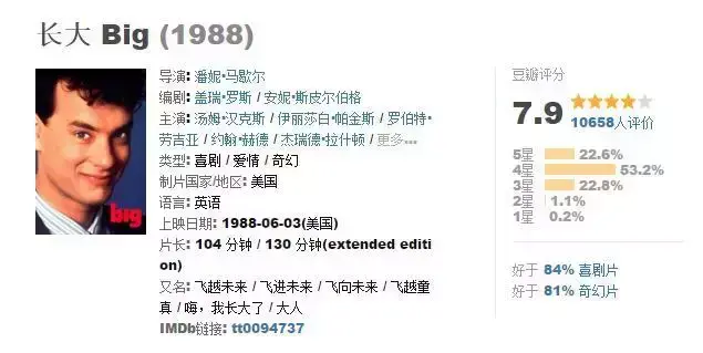 向古老的许愿机许下愿望,12岁的乔什一觉醒来变成了32岁,然而随着工作、生活、爱情这些成人世界的压力开始向乔什逼近,乔什那颗刚满13岁的心渐渐感到困倦失落,他开始回想,这是否就是自己想要的成长…… 片子里,年轻的汤姆·汉克斯呆萌有趣,没看过就去看看吧。