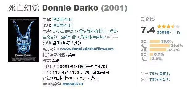 讲述了少年丹尼在一个带着诡异面具的巨兔引导下,为了阻止宇宙走向毁灭而孤军奋战的故事。。很装逼的一部电影,有点难看懂。当时的吉伦哈尔真年轻!