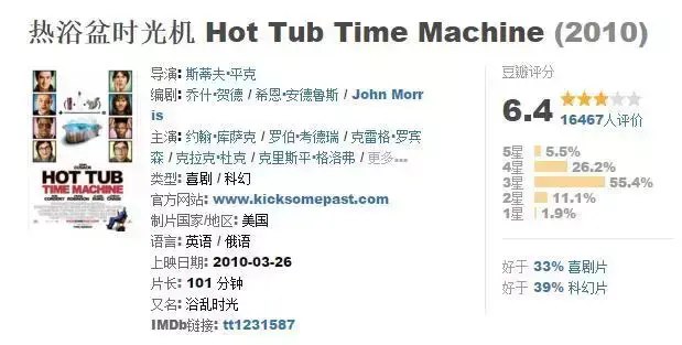 很不错的小格局穿越电影。剧情有些老套,但却挺有趣:一群各种失意的中年朋友,相聚在酒店,在热浴盆前喝醉,一觉醒来,发现已经穿越回过去,重新得到一次改变人生的机会,你会怎么做?