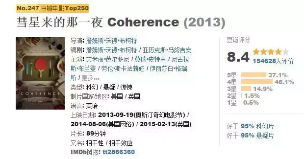 很牛X的剧情!几个人聚在一个房子,突然彗星接近,一片漆黑,灯亮起后走出房子,发现了很多的“自己”,同时重新走回房子的人到底还是不是原来房子里的人,每个房子就是一个平行空间,却可以相互混合。最后,为了过上更好的生活,你会对不同空间的“自己”,做出什么呢?