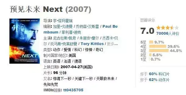 伪穿越,男主凯奇只是可以预见未来2分钟的、与自己相关的情况,为阻止爆炸,最后凯奇憋了个大招。