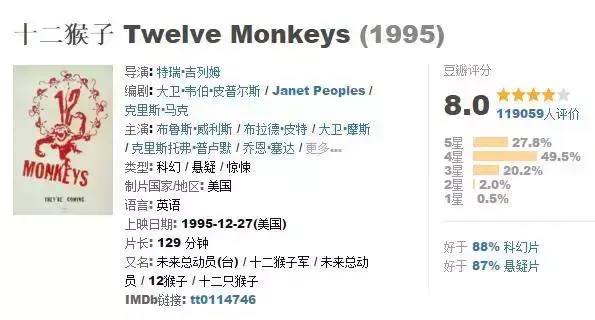 讲述在公元2035年,世界被一种致命病毒侵袭之后,剩余的少数人类只能生活在地下,苟且偷生。为了改变这一情况,科学家们设计出一个计划去改变这一切并最终找到了释放病毒的罪魁祸首:十二猴军团的故事。电影最后形成一个“环”,这是轮回,也是宿命。。。