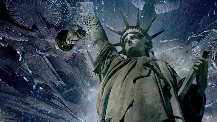 美国人正准备热烈庆祝七月四日国庆日之前,美国各地的监视站发现一艘直达数百英里的巨大飞船接近了地球。飞船发出的无线电信号干扰了地球的通信卫星信号。飞船放出了36艘直径达15英里的子飞船飞抵地球上各大城市的上空。世界上的人们感到了迷惑和恐惧,但也有人想要欢迎外星友好使者的来临