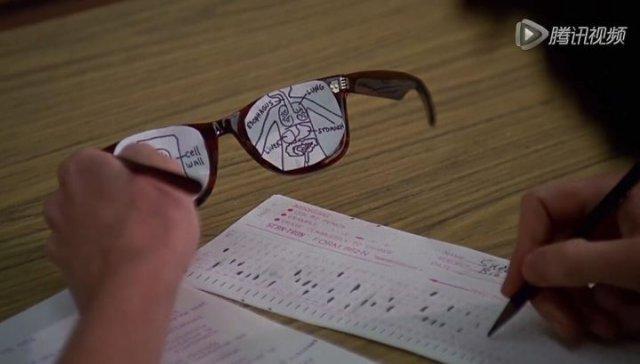 看清考试内容后,用激光把答案射在老师背后。