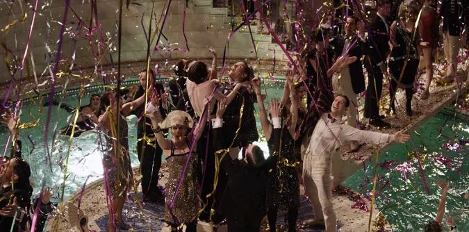 此外有更多华丽的运动镜头,包括飙车,还运用了大量的特效、CG,特别是庞大的华丽的场面,宴会里的疯狂、浮夸被他拍得淋漓尽致,道具、服装极其华丽。