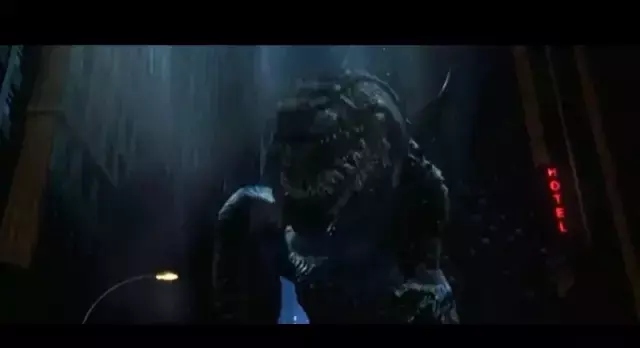 6、庞然大物从海里到了市区,大家才看清它的真面目,原来是恐龙。市民十分惊恐,前几起的渔船事件已经让军队的人知道了它的威胁,而这次到市区里,这个怪物的破坏力更是十分强大。它所到之地的桥梁和大厦都倾刻被毁坏,而在此时,正在进行选举投票的政府官员也感受到了如地震般的震感。