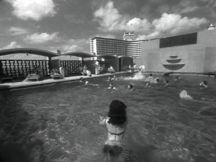 例如第一个故事开场的屋顶镜头,在3分22秒的时间里,镜头扫荡了整个屋顶的格局,然后下降两个楼层(此时的高楼边缘清晰可见),最后扎入游泳池而结束。先看它的难度,镜头有着平面的推拉,也有竖直的移动,还有水下的摄影,导演要将它们放在一个镜头里,还需要兼顾场景安排、演员表演。摄影机垂直下降是让人惊异的部分,因为在这个过程里我们看到了高楼陡峭的边沿,以及坐在无围栏阳台上的演员,这证明摄影机在悬空下降过程里有旋转拍摄(即人为控制摄影机)。更重要的是,在技术条件相对落后的60年代,这个镜头成功实现了水下拍摄。这个长镜头传递的信息量极大,几乎道尽了古巴上流社会奢华的一切,富丽堂皇,浮躁嘈杂。