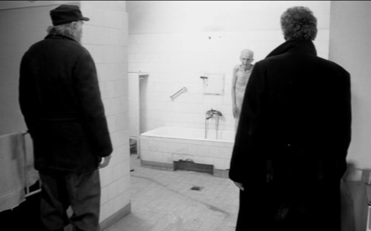 影片共145分钟,只用了39个镜头。最有震撼力的一个镜头是人们冲进医院,镜头慢慢跟进,如一个旁观者一样从一个房间到另一个房间,病人被暴徒们拖下床,暴打一顿,屋里所有的东西都被掀翻、砸碎。但是,最让人惊奇的是这一场戏里没有一个人叫喊,痛哭,咒骂,我们只听见金属的敲击声,物品的破碎声,暴徒和受害者都保持了沉默,但正是因为这种沉默才让这场戏更有力度。当两个暴徒把一条门帘扯下,镜头指向一个站在浴缸里骨瘦如柴的老人时,音乐骤然响起,暴徒们如醉初醒般,不约而同停止了殴打,慢慢地一个接一个的撤出了医院。镜头跟着他们离开房间,进入走廊,然后离开这群人,向右摇,镜头里面出现了躲在黑暗中的男主角的脸,他的脸上写满惊恐,眼睛一眨也不眨,镜头结束。其影像及配乐让人震撼得说不出话来。