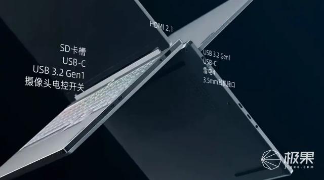 这款笔记本配备 1.5mm 韵律键盘,拥有 0.3mm 键腹曲线和四档背光调节,为用户带来舒适的打字体验。接口包括两个雷电 4 接口、一个 USB 3.2 接口、一个 HDMI 2.1 接口和一个 3.5mm 音频接口,满足了用户日常连接各类设备的需求。