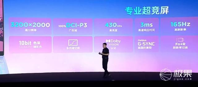 这款笔记本配有 3.2K 165Hz 电竞屏,拥有 430 尼特亮度、100%DCI-P3 广色域,支持色域切换,可超频至 3ms,拥有 10bit 色深等。