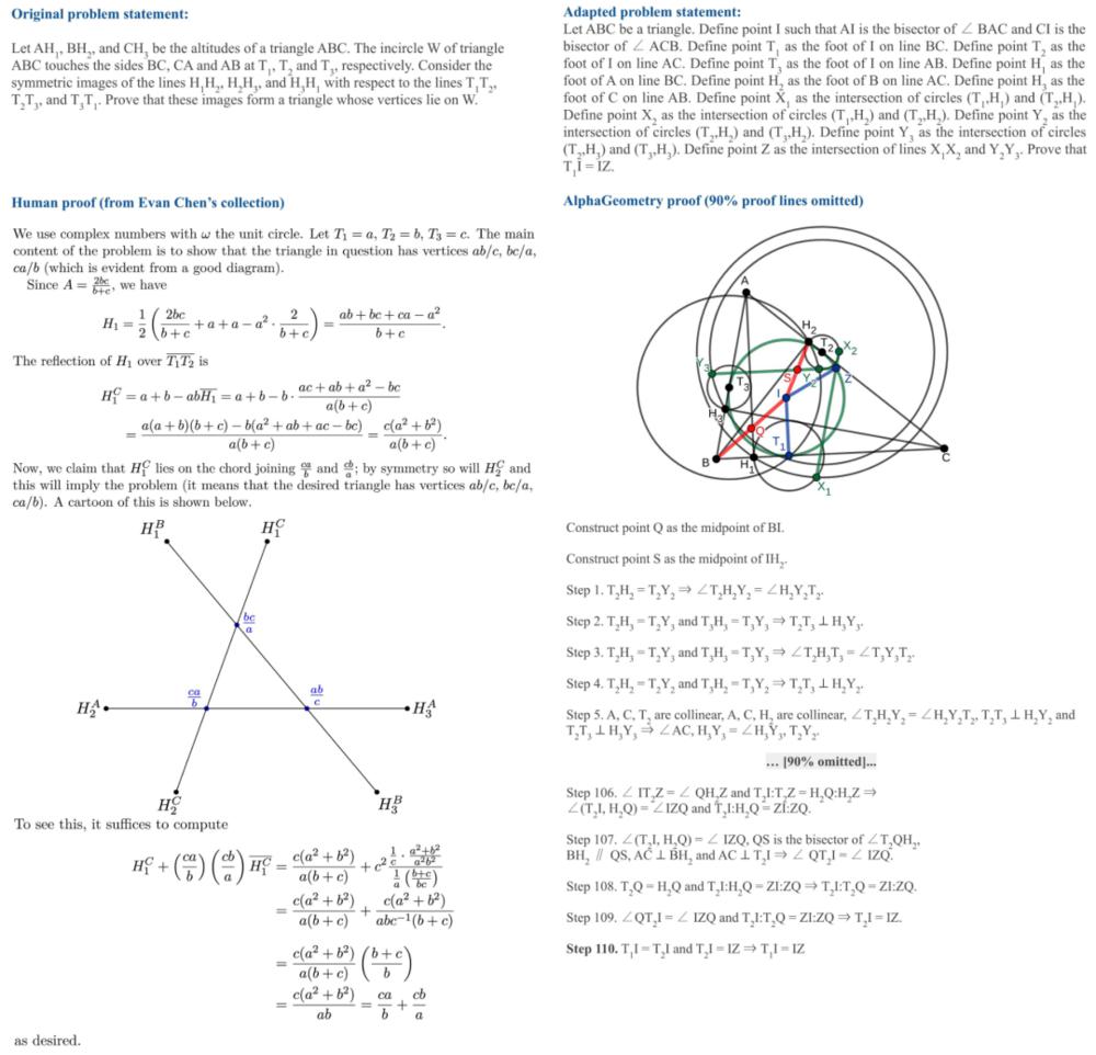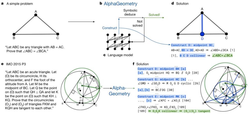 这个名为 AlphaGeometry 的 AI 模型由来自 Google DeepMind 和纽约大学的联合团队研发,是一个能解国际数学奥林匹克竞赛级别几何题的 AI 系统,于近日登上了顶级科学期刊 Nature。