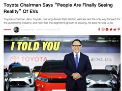 在他看来,丰田销量的放缓,证明他对电动汽车的抵制是正确的,人们终于看到了 " 这项技术的‘现实’ "。