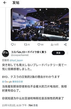 不仅在线下展台挤满了人,比亚迪在日本的网络上也引起了不少讨论。