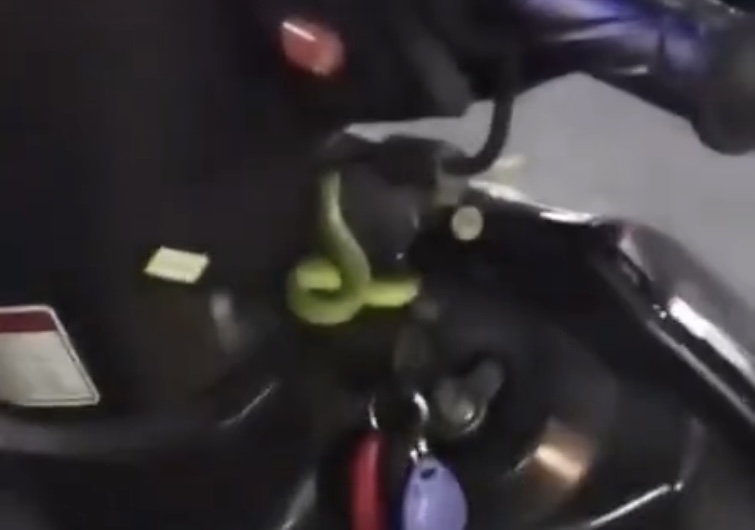 近日,福建一男子在路边的电瓶车上看到了一条青绿色的小蛇,一开始怀疑是车上的小饰品,结果居然是条真蛇。一般人遇到估计早就离远远的了,结果这位老哥很猛,还上前去抓蛇,还是徒手抓。