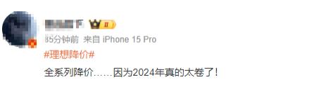 4 月 22 日一大早,理想汽车发布 2024 款理想 L7、理想 L8、理想 L9 和理想 MEGA 全新价格,对四款车型价格下调。瞬间,# 理想降价 # 冲上热搜第一,网友议论纷纷。