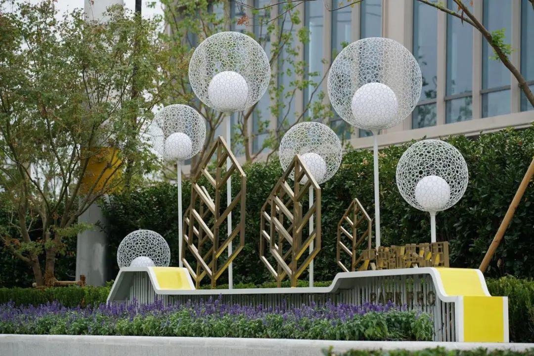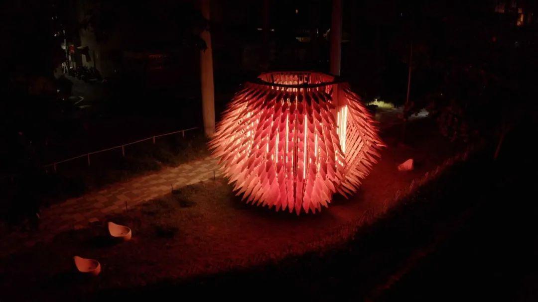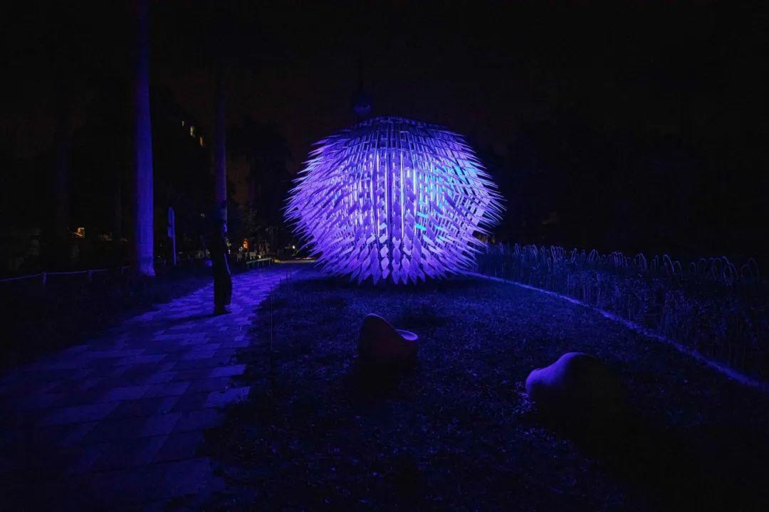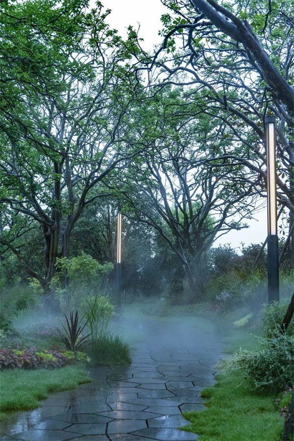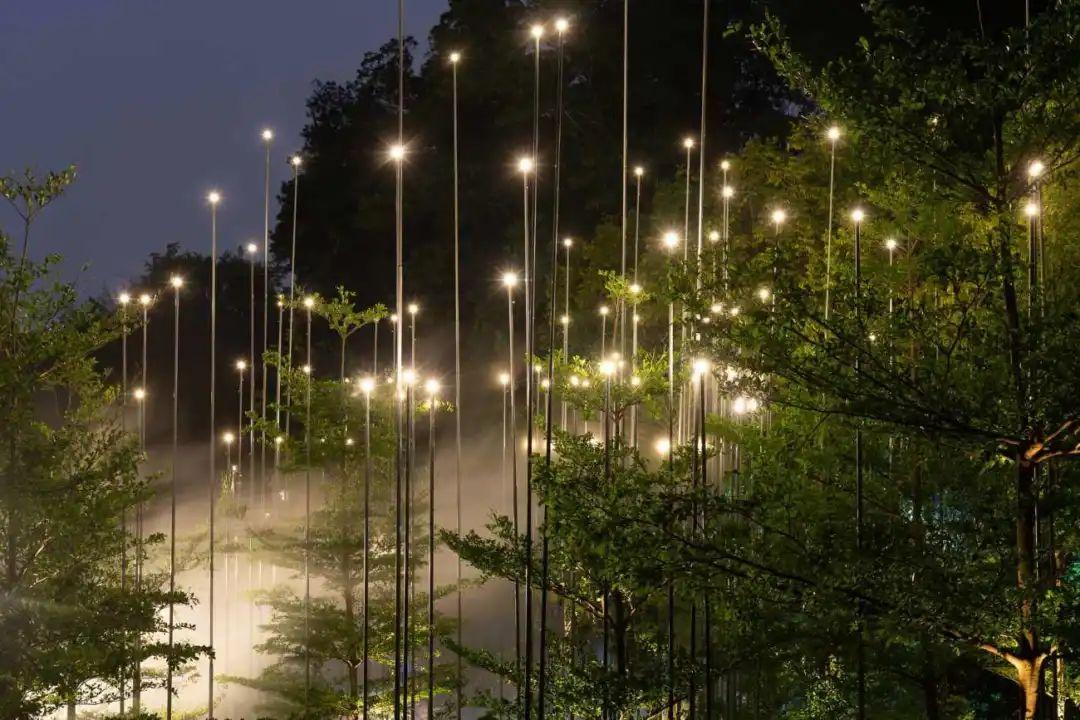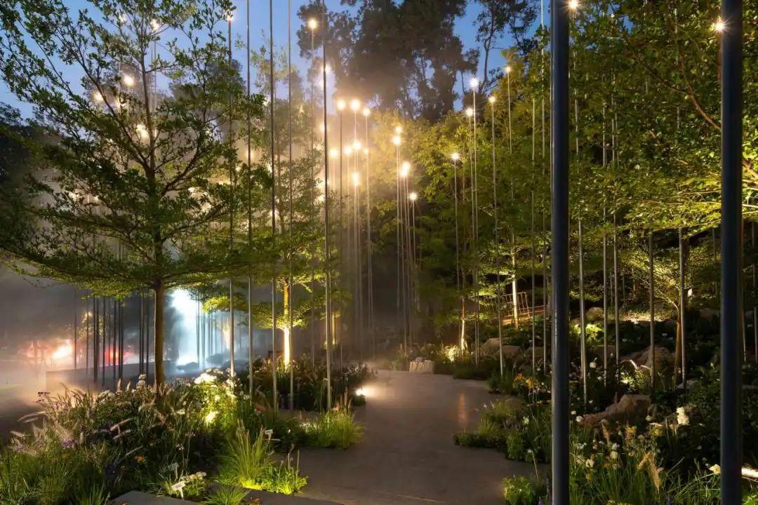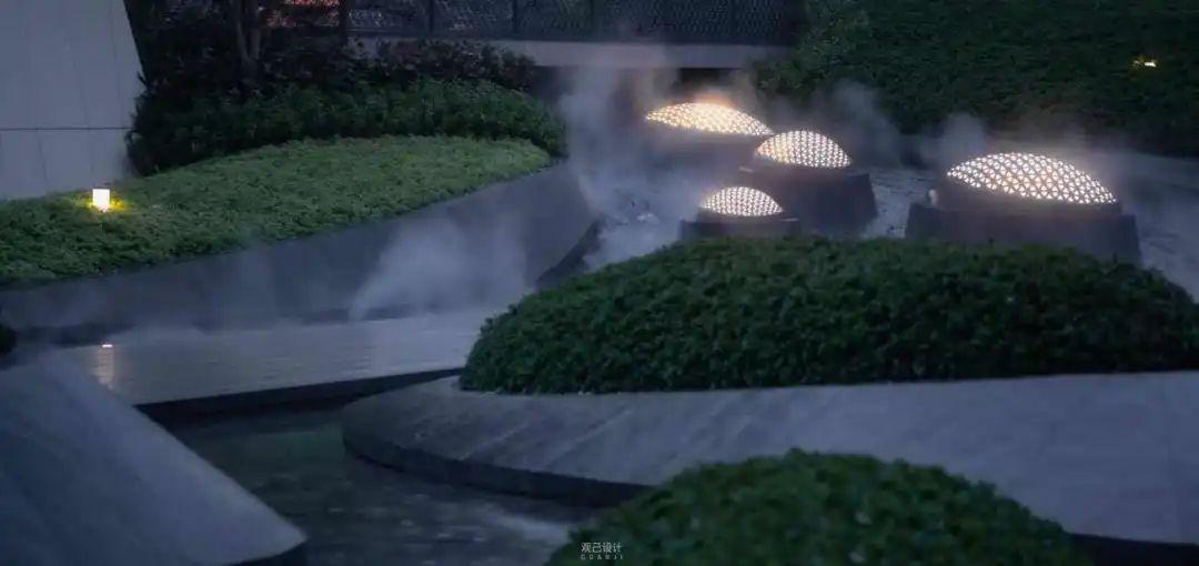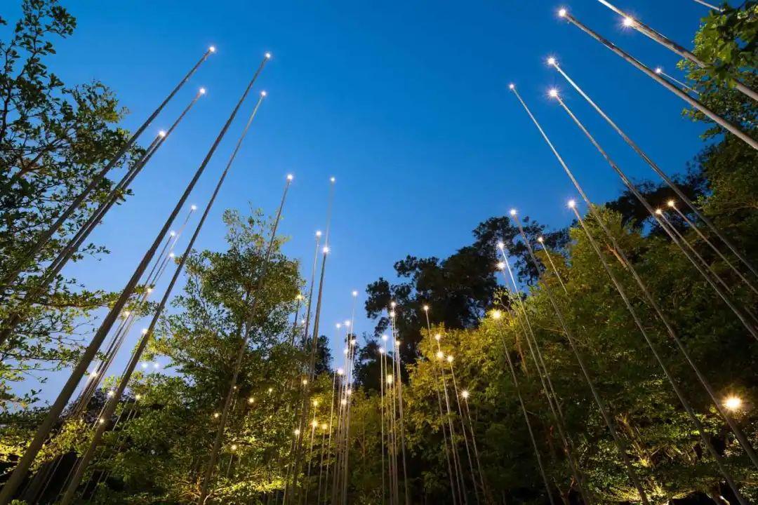 桅杆顶部的照明和喷雾装置进一步增强了元素的视觉效果,也使展览园成为夜幕降临后的装置空间。