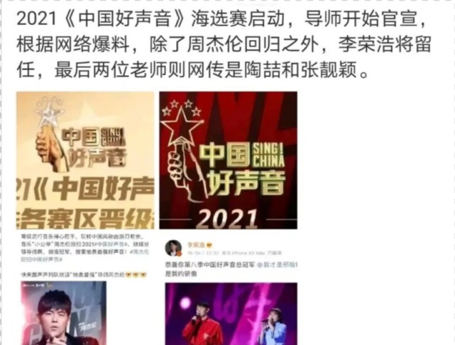 近段时间关于《好声音》十周年导师阵容传得火热,不管版本有多少,反正周杰伦、李荣浩、张靓颖三人是固定的,可见她出席的几率十分高。但就在《王牌》事件发生之后,一位知名的音乐博主立马就发出了《好声音》导师的另一个版本,其中显然没有她。