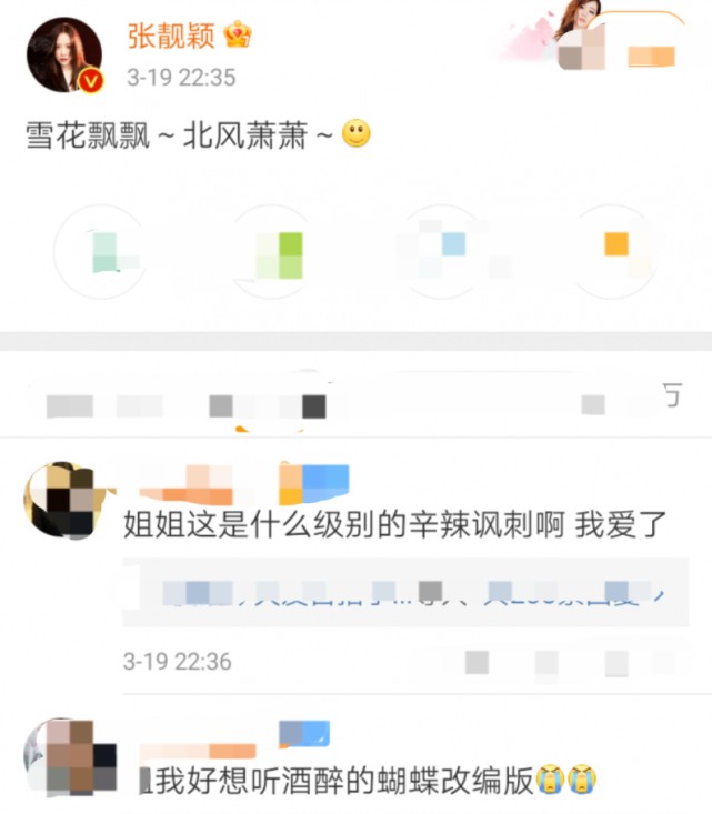 事件的起因很简单,就是前几天《王牌》播出的时候,节目的镜头比例给得不恰当,特别是张靓颖和汪苏泷,全程看下来就没有出现几次。而后大家就发现张靓颖发布了一句“雪花飘飘”,被网友们猜测为内涵节目组为了捧新人而让她没有表现机会。甚至于她的男友也下场开撕,把蓝台吐槽得厉害。