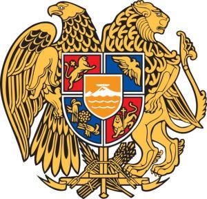 亚美尼亚国徽启用于1992年4月19日,仿照亚美尼亚民主共和国的国徽设计。为一盾徽,由鹰和狮子护持。中间的小盾所画的图像为诺亚方舟停于阿拉腊山山顶。代表亚美尼亚的自然风光。盾的其余部分分为四个象限,周围的四组图案代表历史上的4个王国:左下角为双鹰回头对视,象征阿尔塔什斯王朝;左上角为背负十字架的狮子,象征巴格拉提德王朝;右上角为双头鹰,象征阿萨息斯王朝;右下角为爪持十字架的狮子,象征鲁本王朝。四个象限象征国家悠久的历史。盾下下方是一条被利剑斩断的锁链,交叉着绿色树枝和箭头,还有麦穗、羽毛和绶带。