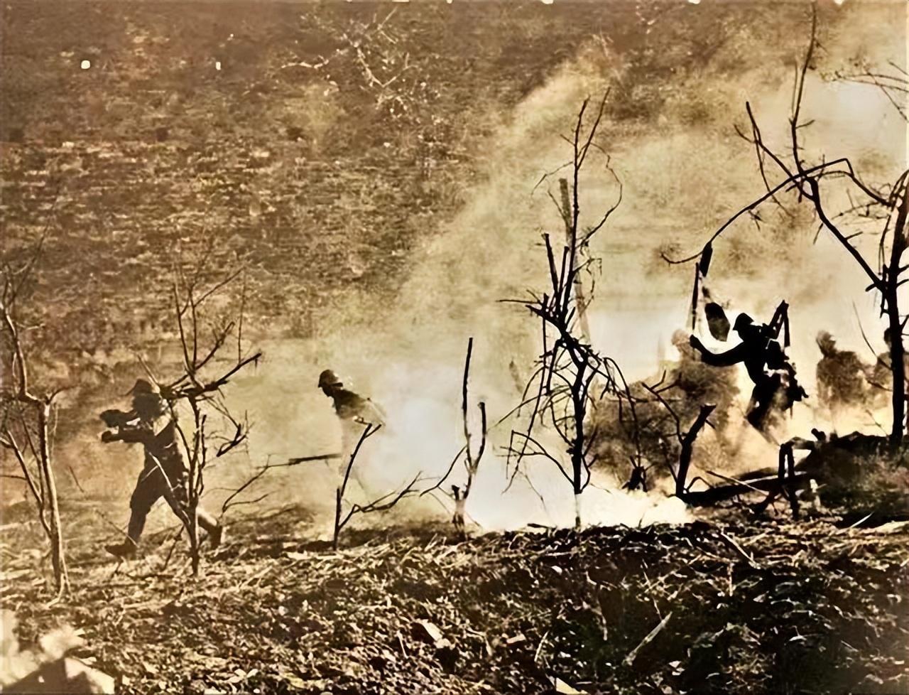鬼子错了,当他们攻击至88师阵地前不足50米时,从坍塌的战壕里,从隐藏的碉堡里,从山壁的隐蔽处,甚至从阵亡官兵的尸体下,无数的步枪和轻重机枪子弹射向了他们。间杂的国军82毫米迫击炮,75毫米的山炮炮弹,也射入日军冲锋人群中。