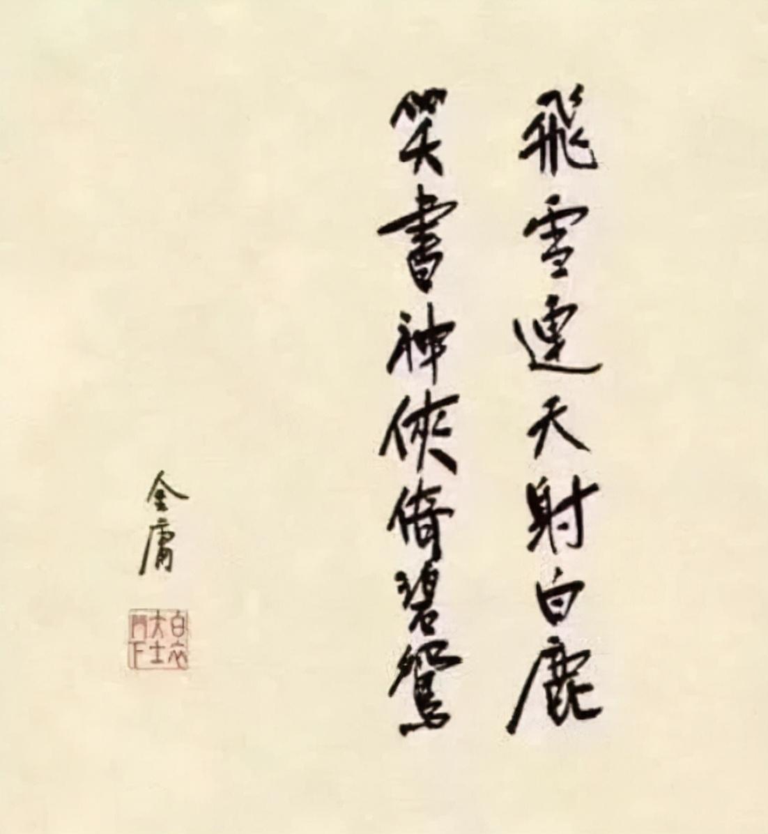 “飞雪连天射白鹿,笑书神侠倚碧鸳”这是金庸根据自己十四部成名作名称首字取得一副对联。