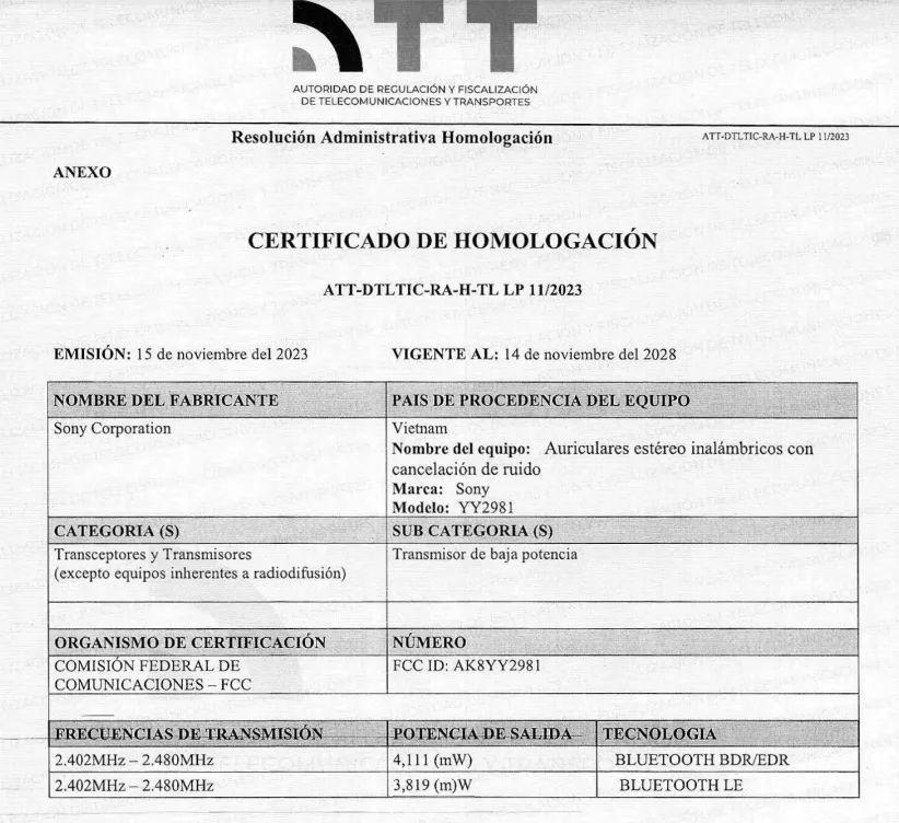 这款耳机还现身 ATT Bolivia 机构,显示该耳机在蓝牙 BDR 下输出功率为 4111 ( mW ) ,在蓝牙 LE 下输出功率为 3819 ( m ) W。