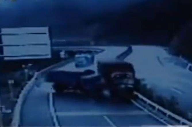 按常理来说,这样的路况和天气,是很难发生事故,但是,有一辆装载着化学品的重型罐式货车,却偏偏不按常理出牌。