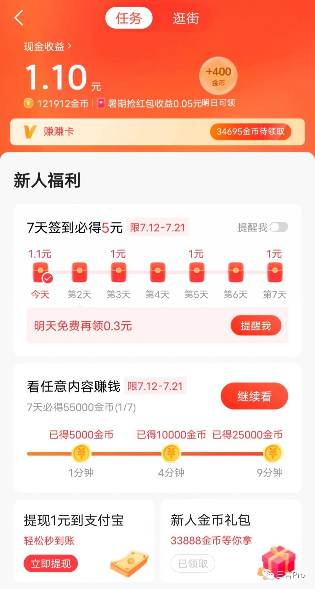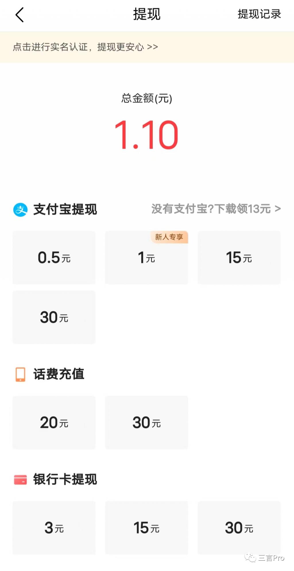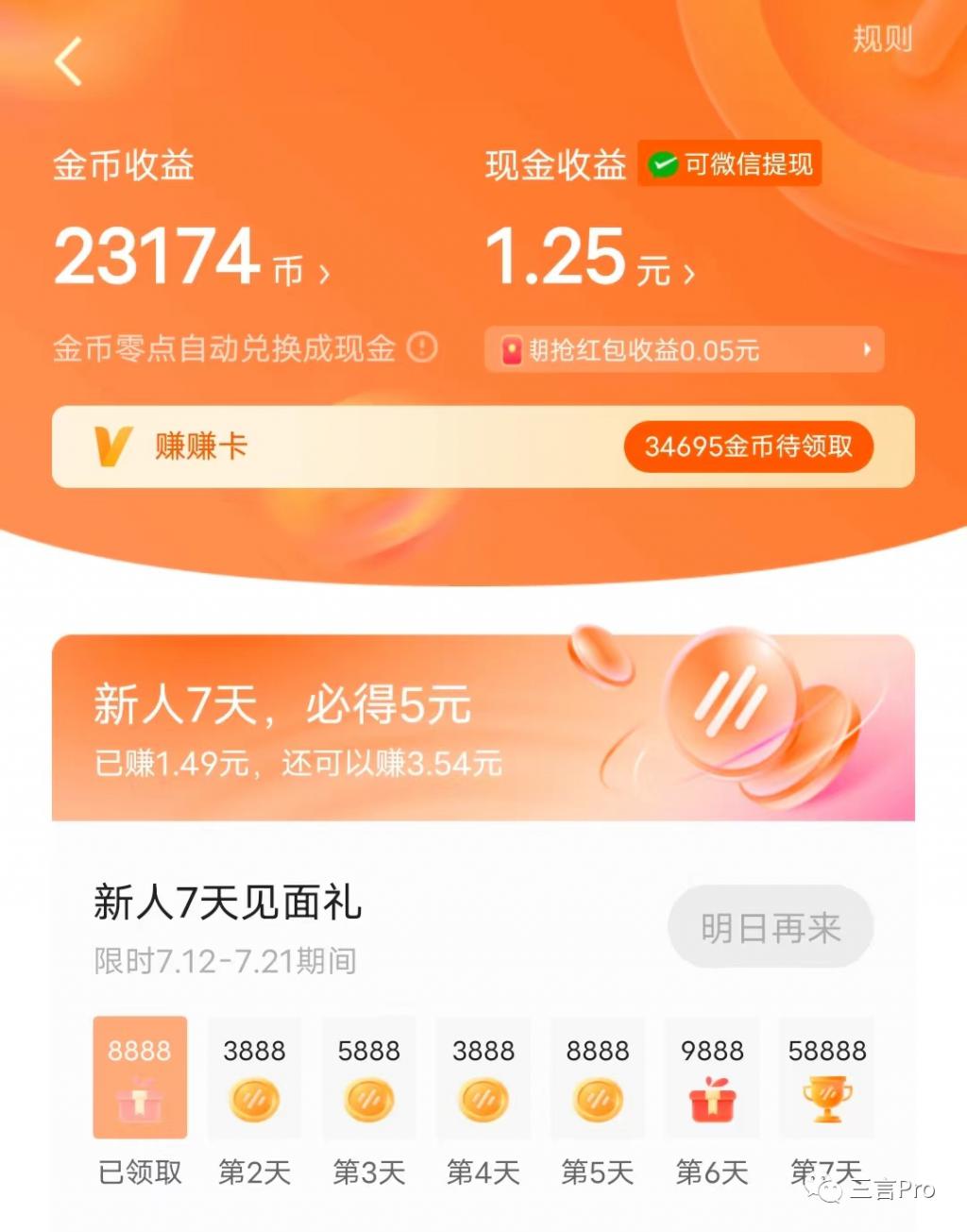 那么刷一天这类的 APP 能赚多少钱呢?三言今天对几个 App 进行了一番测试。