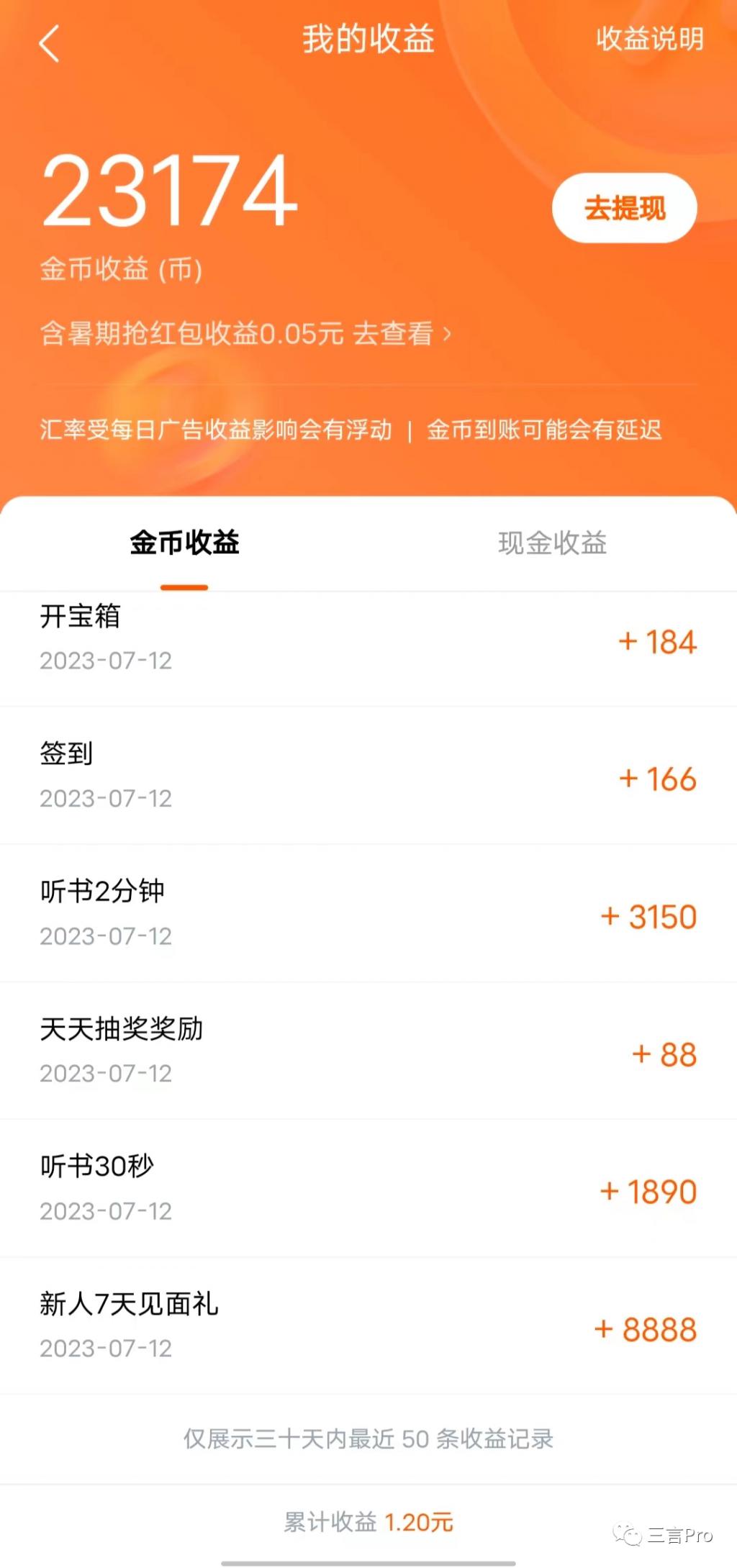 与番茄免费小说一样,这里的金币兑换汇率同样受每日收益影响会有浮动。暂时无法确定 23174 金币可以兑换多少现金。
